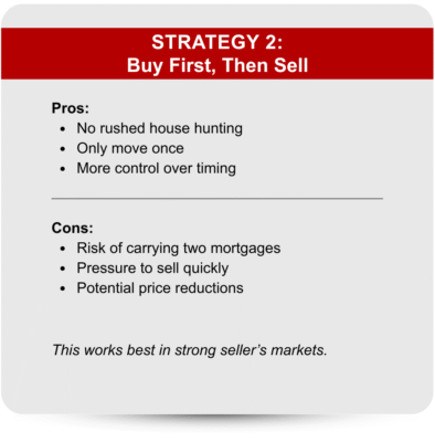 If you sell your home first but need additional time to transition, consider negotiating a rent back, also known as a post settlement occupancy agreement. This allows you to close on your sale and remain in the home for 30 to 60 days while paying a daily rental rate to the new owner. It provides valuable flexibility and breathing room while you finalize your next purchase.