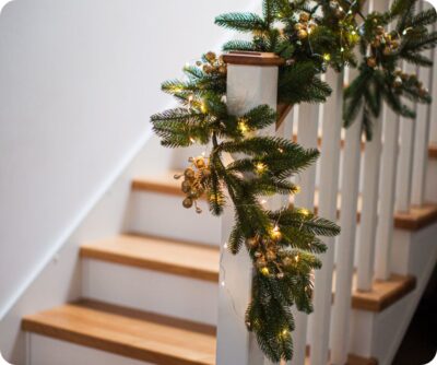 Use holiday décor strategically to draw attention to your home’s best assets. A garland draped along a staircase, a simple wreath on a front door, or a few twinkle lights framing a fireplace mantle can guide the eye toward these focal points. When buyers tour your home, these details help them notice—and remember—those features.